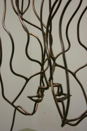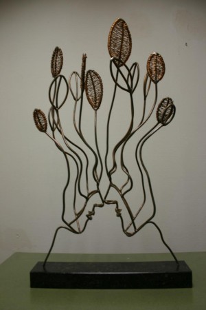 Opdracht: trouwbeeld Materiaal: lasdraad, koperdraad en belgische hardsteen Afmeting: 25 x 60 x 75 cm